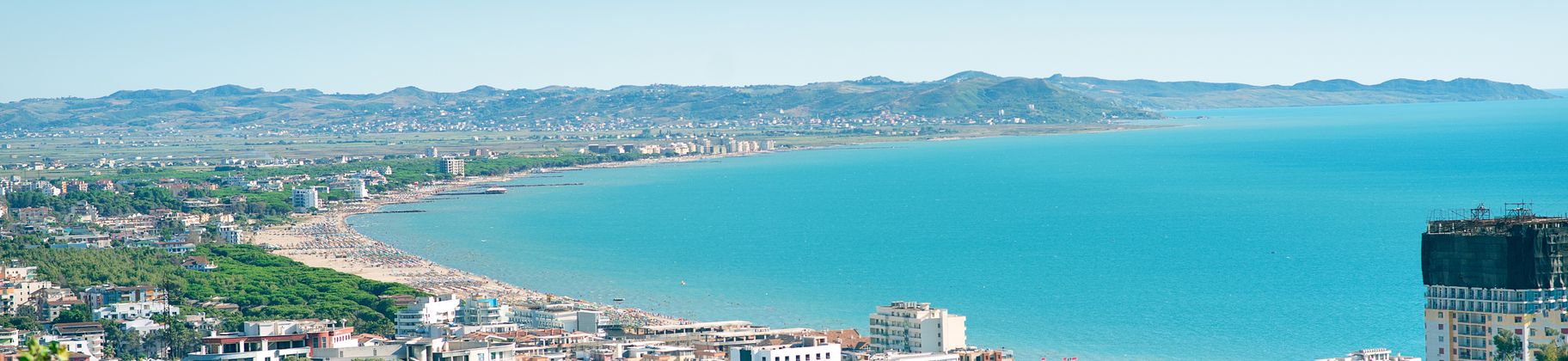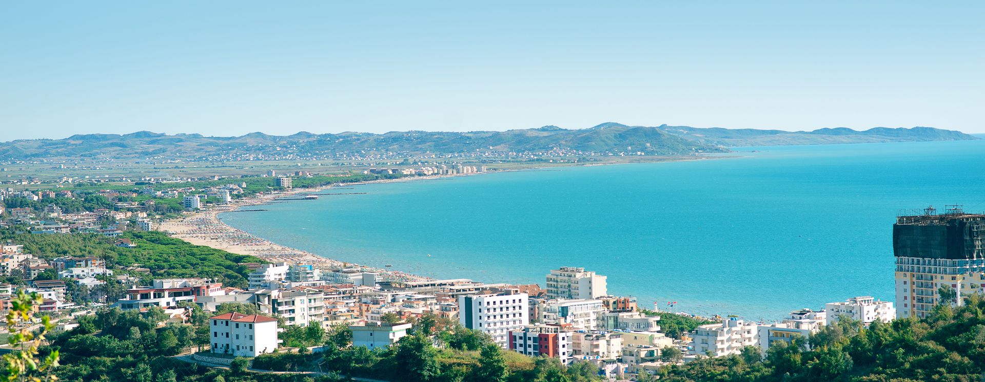 Durrës liegt an der mittleren Adriaküste Albaniens, auf einer schmalen Ebene zwischen Meer und Hügelketten. Die Region verbindet flache Küstenabschnitte mit sanften Anhöhen im Hinterland, was sie landschaftlich abwechslungsreich macht. Während die Innenstadt direkt am Wasser liegt, beginnt das ländliche Umland bereits wenige Kilometer ausserhalb. Diese Nähe von Stadt, Strand und Natur macht Ferien in Durrës für viele besonders attraktiv.