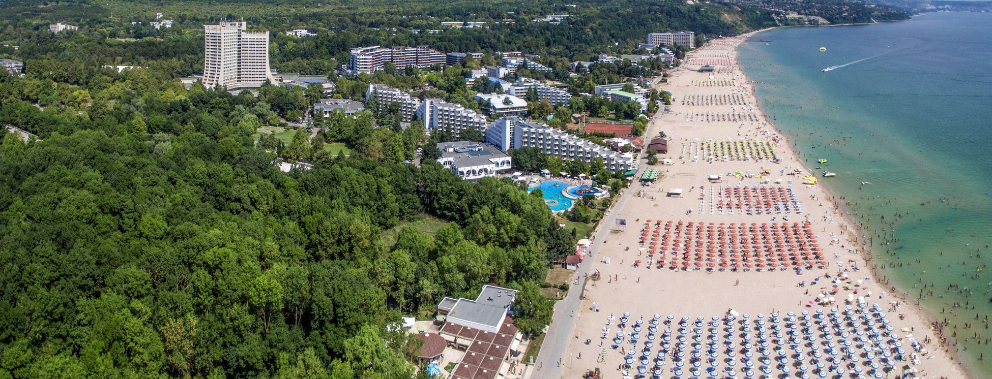 Eine Hotelstadt am Schwarzen Meer mit Unterhaltung für die ganze Familie – Ferien in Albena. Während der sozialistischen Zeit wurde das kostspielige Tourismusprojekt ins Auge gefasst, eine touristische Stadt zu errichten, und bis heute begeistert diese ihre Besucher mit ihrem breiten Angebot. Der ca. 7 km lange Sandstrand verfügt über eine starke touristische Infrastruktur und ein breites Freizeit- und Sportangebot. Aufgrund des geringen Wellengangs und des sanft abfallenden Ufers ist der Strand für Familien und kleine Kinder besonders geeignet. Sollte der Wasserspass zu viel werden, so bieten diverse Spielplätze und Rutschen am Strand spannende Abwechslung.