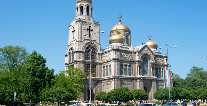Muttergottes-Kathedrale: Das Wahrzeichen der Stadt beeindruckt mit goldenen Kuppeln und kunstvollen Wandmalereien. Vom Glockenturm aus erleben Sie einen Panoramablick über Varna.