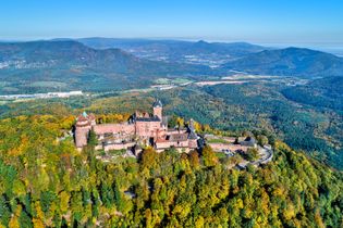 Das Schloss Haut-Koenigsbourg thront majestätisch über dem Elsass und bietet einen beeindruckenden Blick auf die umliegende Landschaft. Die gut erhaltene Festung aus dem 12. Jahrhundert zeigt eindrucksvolle Architektur und historische Räume. Besuchende können die Geschichte des Schlosses erkunden und die strategische Bedeutung der Anlage im Mittelalter nachvollziehen.