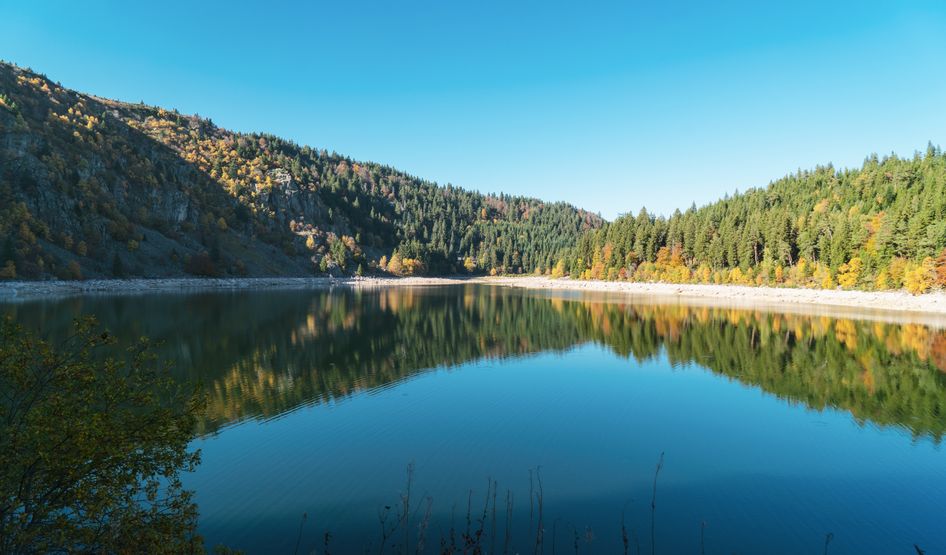 Der Lac Blanc im Elsass bietet eine ruhige Kulisse für Naturliebende. Umgeben von sanften Hügeln und dichten Wäldern, lädt der See zu Spaziergängen und Bootsfahrten ein. Die klare Wasseroberfläche spiegelt die Landschaft wider und zieht Fotografierende an. Ein idealer Ort für Erholung.