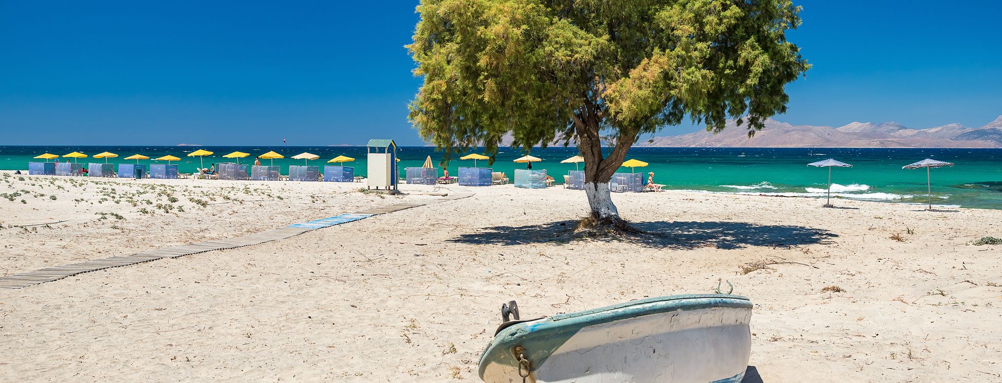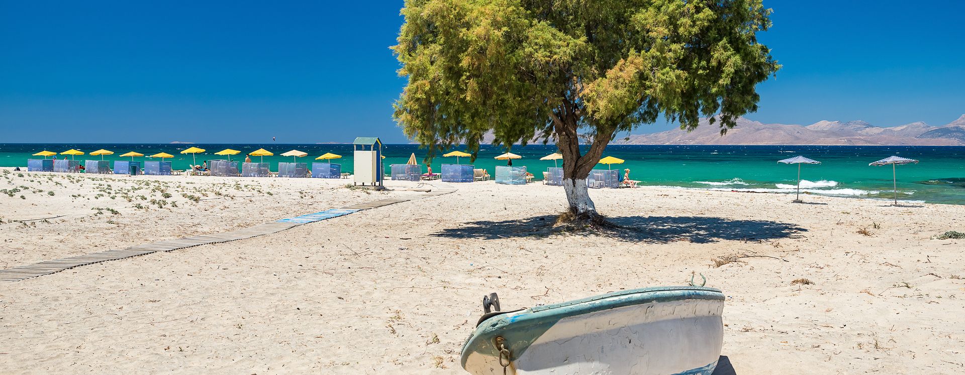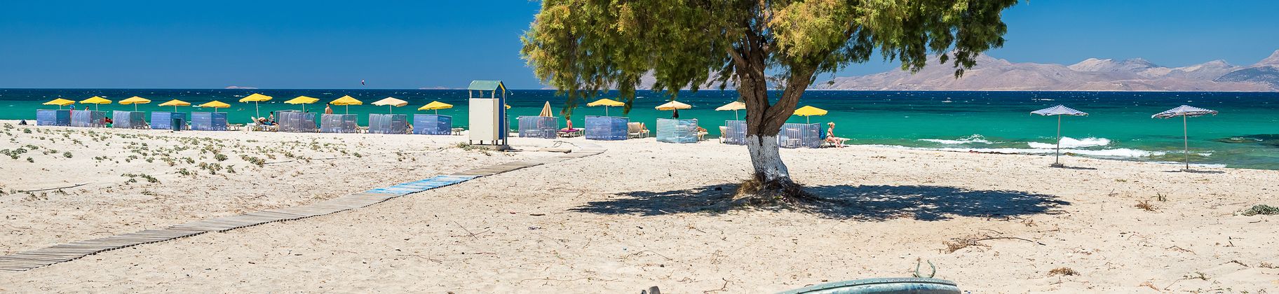 Die typische Badeferiensiedlung ca. 14 km von Kos-Stadt besteht praktisch nur aus einer einzigen Strasse mit vielen Tavernen, Geschäften und Pubs.