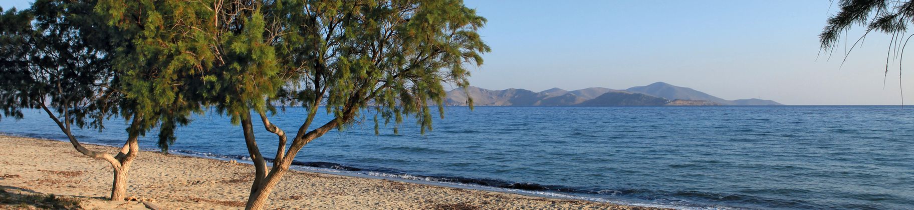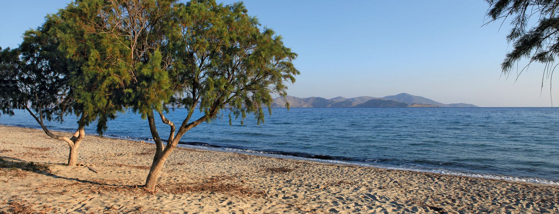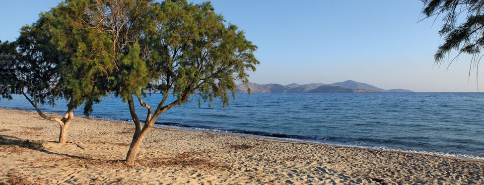 Dieser beliebte Ferienort liegt am traumhaften weitläufigen Strand. Mittags und abends laden Tavernen zu gemütlichen Stunden ein.