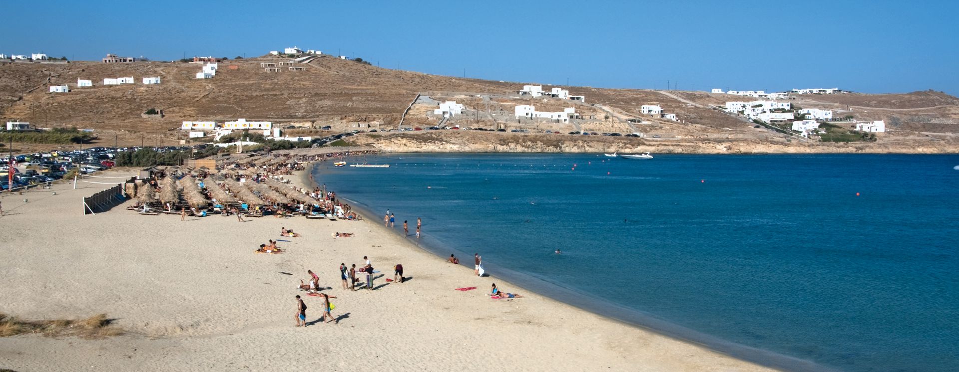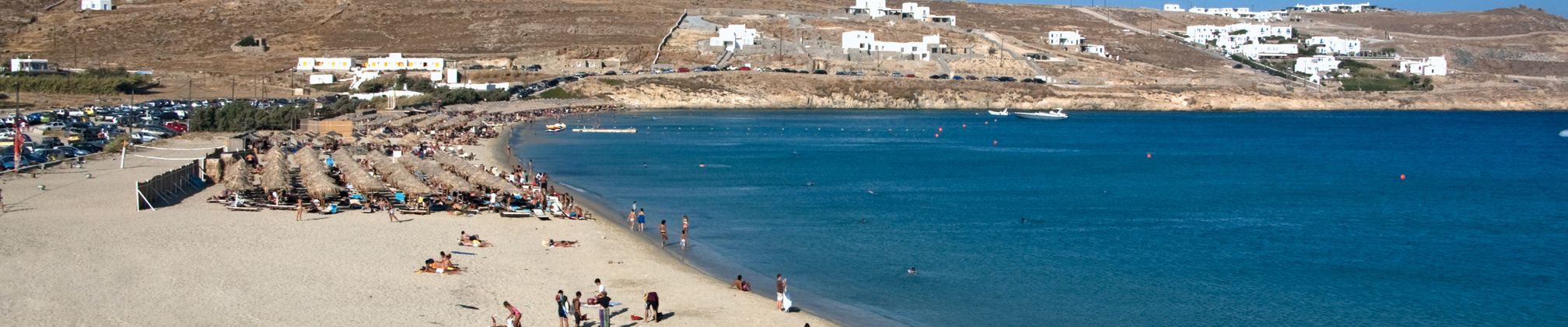 Südöstlich von Ano Mera befindet sich diese 600 m lange, sanft geschwungene Bucht mit einigen Restaurants und Cafés.