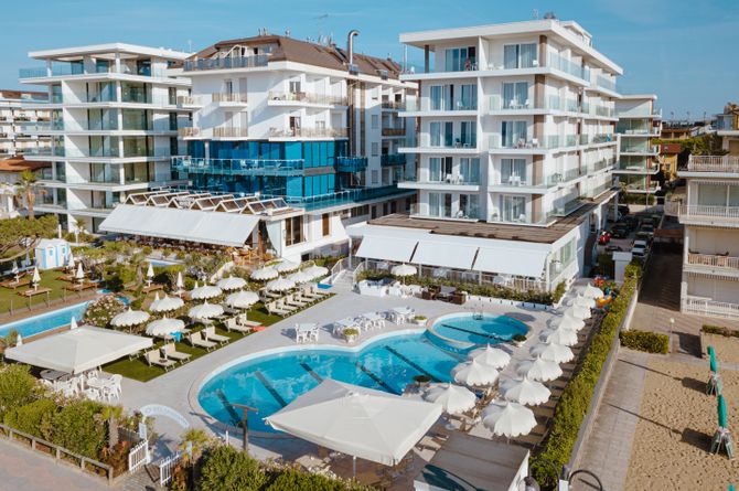 An hervorragender Strandlage punktet dieses Viersternehotel in Lido di Jesolo mit seinem kleinen Wellnessbereich und verspricht erholsame Badeferien für die ganze Familie.