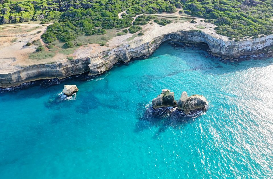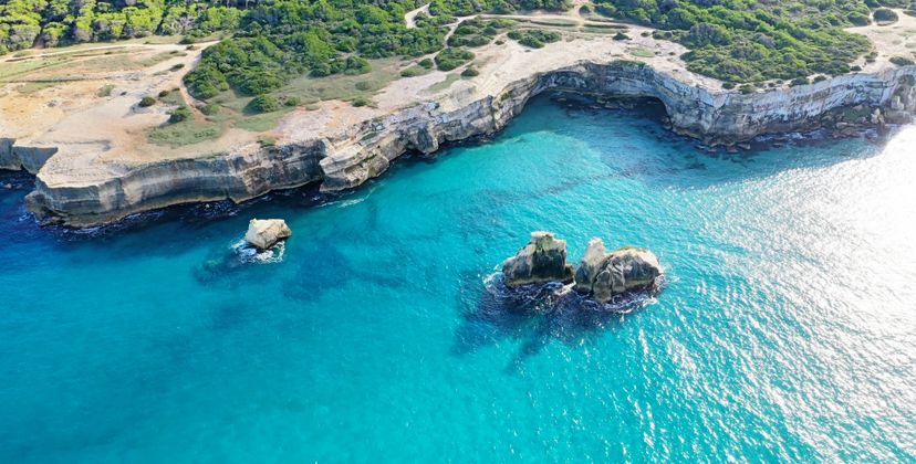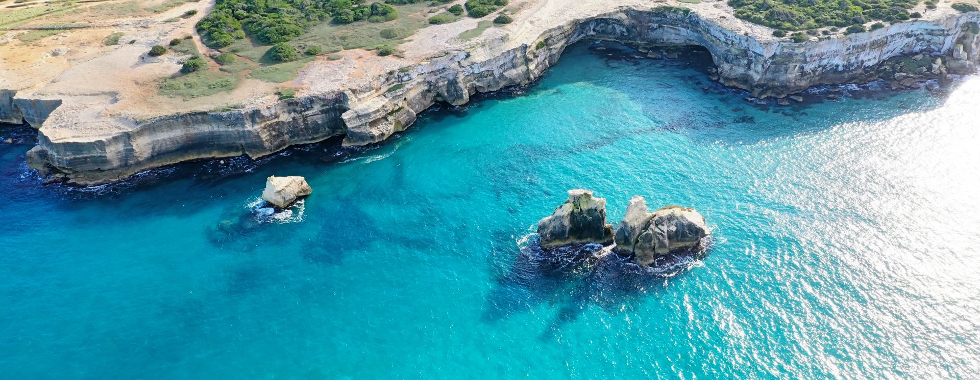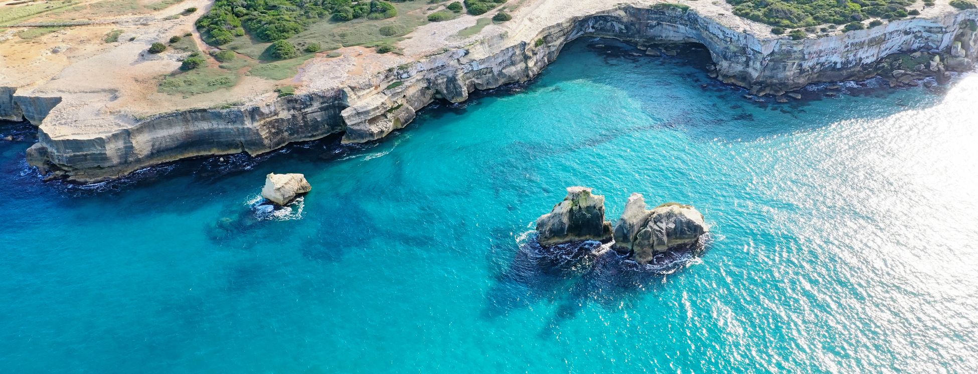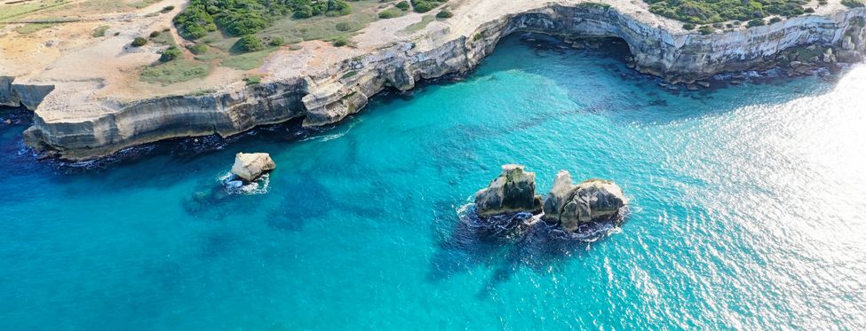 Die Provinz Lecce liegt im Süden Apuliens auf der Halbinsel Salento im untersten Teil des Stiefelsabsatzes. Das eher flache Gebiet hat Anhöhen von lediglich ca. 200 Metern. Nördlich von Otranto gibt es zwei natürliche Salzseen, die von üppiger Vegetation umgeben sind und Fischfarmen beherbergen. Am Kap von Otranto hört das Ionische Meer auf und die Adria beginnt. Entlang der Adriaküste ist die Landschaft stark verkarstet, wodurch beeindruckende Grotten wie Zinzilusa entstanden sind. Besuchen auch Sie den südlichsten Punkt Apuliens.