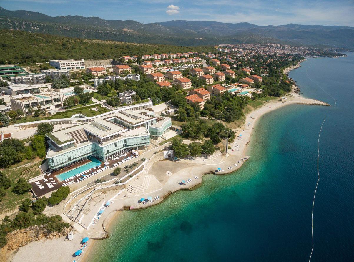 Das Hotel in Hanglage gewährt einen beeindruckenden Ausblick auf die Kvarner-Bucht und ist eingebettet in eine reizvolle Naturkulisse. Direkt ans Resort grenzt ein Kiesstrand, der je nach Unterkunftslage bis zu 500 m entfernt liegt. Das lebhafte Zentrum von Novi Vinodolski mit einer Vielzahl an Restaurants, Bars und Geschäften sowie einem Jachthafen erreichen Sie nach etwa 2,5 km. Empfehlenswert sind der Besuch des Novi Vindoloski-Kastells samt Turm oder ein Trip zur vorgelagerten Insel San Marino mit ihrer kleinen Kirche des Heiligen Marino - am besten per Pedalo, Stand-up-Paddel oder Kajak vom Rivica-Kiesstrand (ca. 4 km). Ein besonderer Geheimtipp ist das malerische Dorf Skradin im Nationalpark Krka. Der Flughafen Rijeka befindet sich ungefähr 30 km entfernt.