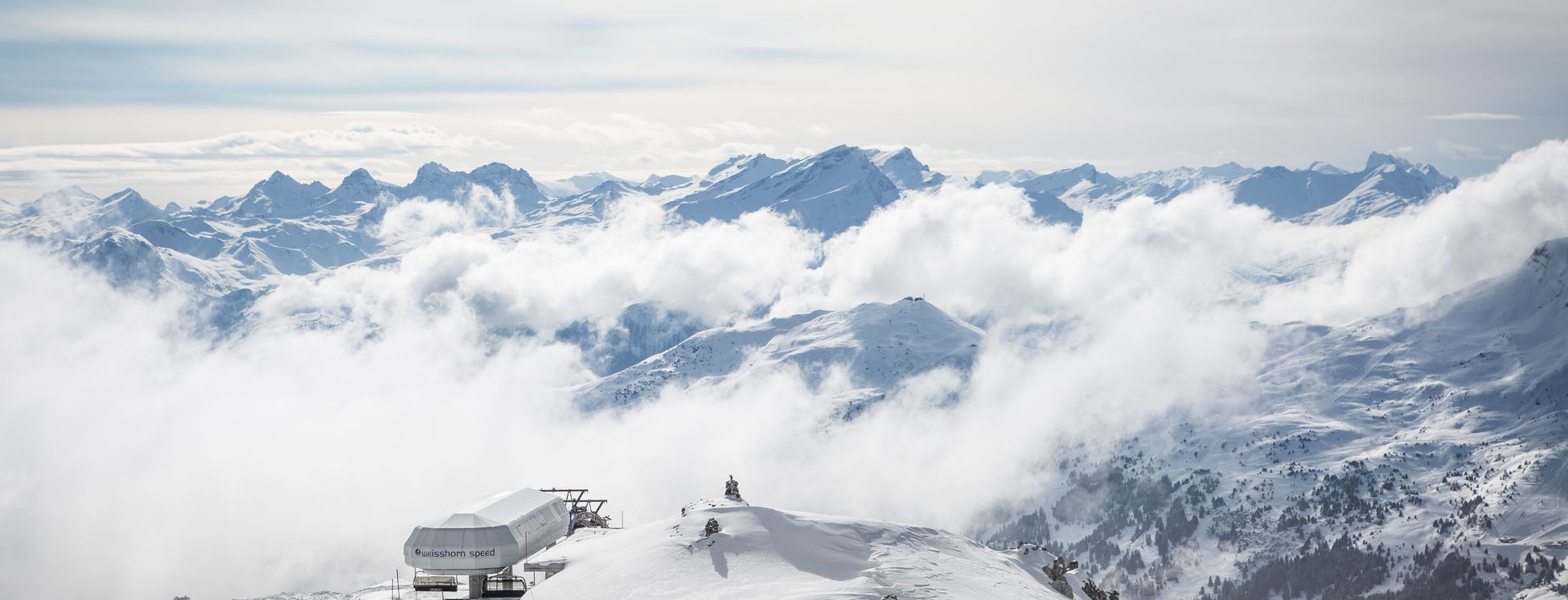 Ein absolutes Muss ist der grossartige Panoramablick vom Weisshorn (2653 m), einem der schönsten und mächtigsten Berge der Schweizer Alpen. Von dort aus blicken Sie auf 400 Gipfel der Schweiz.