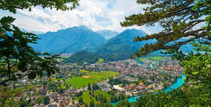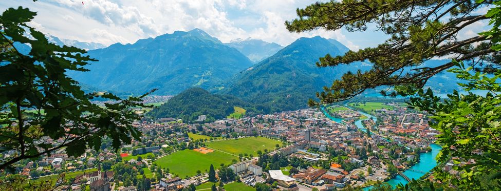 Idyllisch auf dem Bödeli zwischen dem Thuner-und Brienzersee gelegen, ist Interlaken der ideale Ausgangspunkt für Ferien im Berner Oberland. Im Norden und Süden wird die Stadt durch ihre beiden Hausberge Harder Kulm und Heimwehfluh eingerahmt, von denen Sie herrliche Aussichten auf die Stadt und das Umland geniessen können. Die wunderbare Umgebung ermöglicht ein grosses Angebot an Aktivitäten, das Interlaken im Sommer und im Winter zu einem attraktiven Ziel macht. Hier finden Sie die Panoramakarte von Interlaken im Winter und im Sommer.