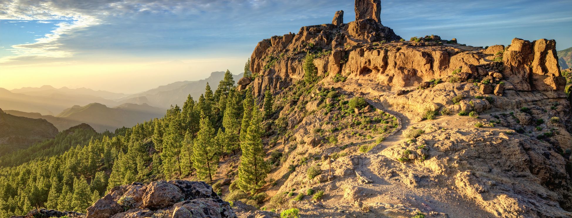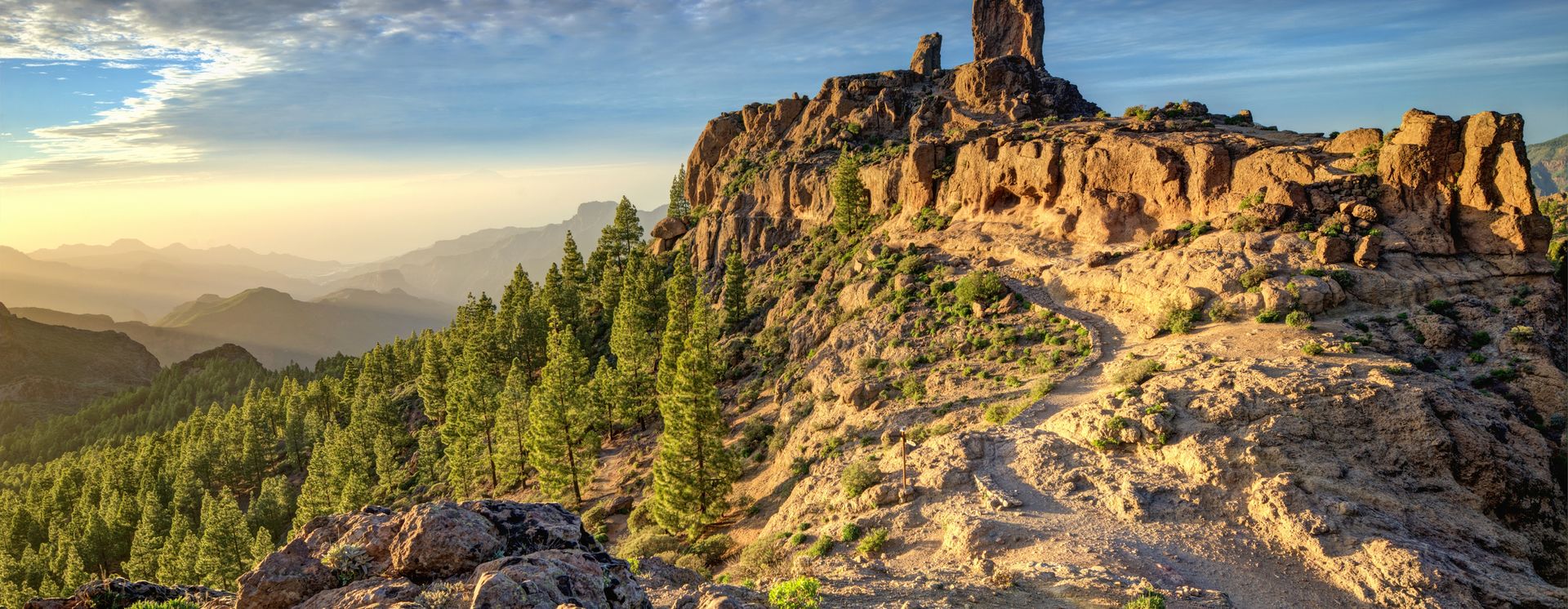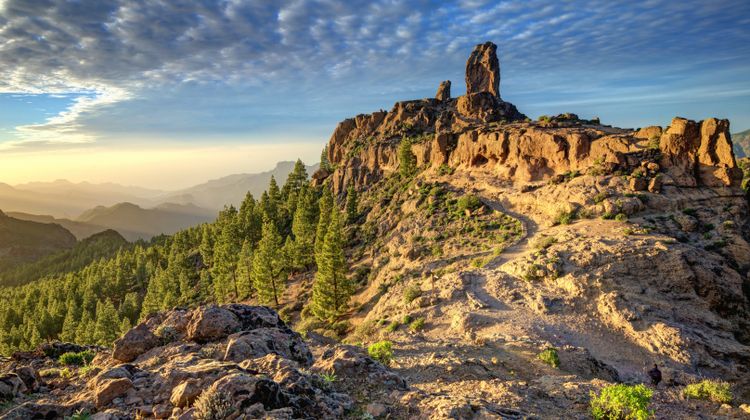 Der Roque Nublo ist ein markanter Monolith auf der Hochebene der Caldera de Tejeda und ragt aus einer weiten Vulkanlandschaft empor. Wechselndes Licht und rasch wechselnde Temperaturen verstärken die besondere fast mystische Atmosphäre dieses Wahrzeichens der Insel. Die Kiefernwälder im Gebiet von Tamadaba prägen weite Landstriche und erzeugen eine klare, harzige Duftnote. Der Barranco de Guayadeque zwischen Agüimes und Ingenio zeigt mit seinen Höhlenwohnungen, wie eng Landschaft und Siedlungsform verbunden sind. Die Terrassenfelder im Barranco de Agaete geben Hinweise auf traditionelle Landwirtschaft, die in den Höhenlagen nahe San Mateo noch sichtbar bleibt. Die abgelegene Playa de Güigüí an der Westküste beeindruckt mit schwarzen Sandstränden und steilen Klippen, die in Kombination mit dem tosenden Atlantik eine wilde, unberührte Atmosphäre erzeugen.