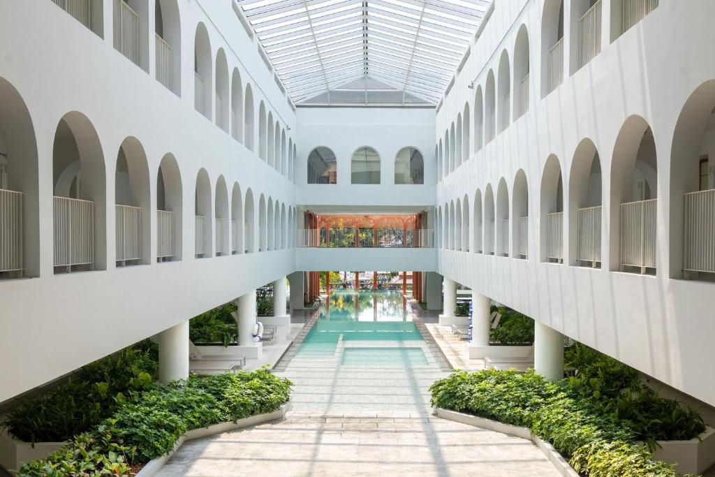 Am Ufer des Chao-Phraya-Flusses vereint das Away Bangkok Riverside Kene urbanen Lifestyle mit entspannter Flussatmosphäre und modernem Design. Elegante Zimmer mit Flussblick, kulinarische Highlights und ein heller Indoor-Pool schaffen eine Oase der Ruhe mitten im pulsierenden Bangkok.