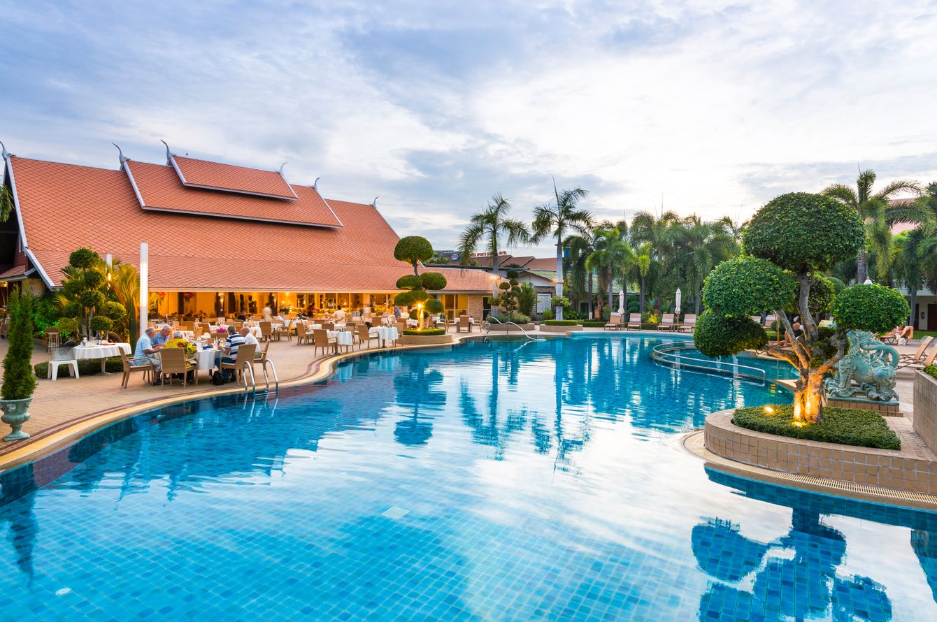 Tropische Ruhe inmitten von Pattaya: Das Resort begeistert mit weitläufigem Garten, grossem Pool und entspannter Atmosphäre – ideal, um Erholung und Stadtleben perfekt zu verbinden.