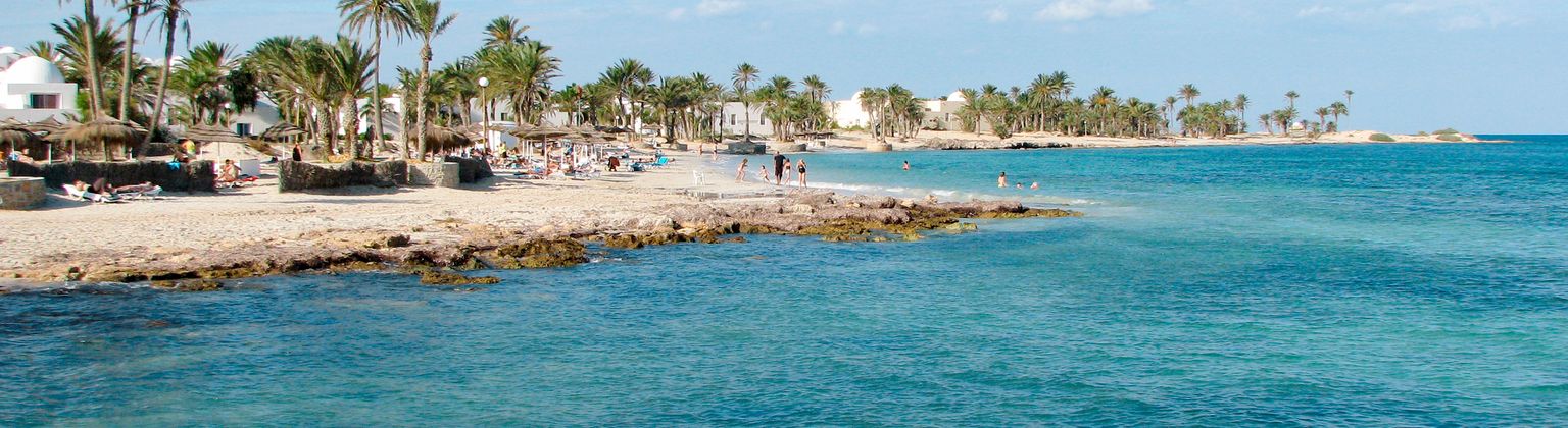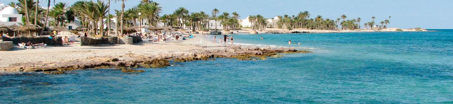 Vor der Südküste Tunesiens liegt das Ferienparadies Djerba. Weisse Strände, tolle Hotels und ein herrlich warmes Meer. Baden, Wassersport und zunehmend auch Wellness stehen zuoberst auf der To-do-Liste. Nebst Sonne und Strand bietet Djerba auch eine reiche Fauna und Flora sowie eine lebendige Tradition mit dem Flair von 1001 Nacht. Warum nicht auf dem Kamel dem Strand entlang reiten oder auf dem Souk ein paar Souvenirs kaufen?