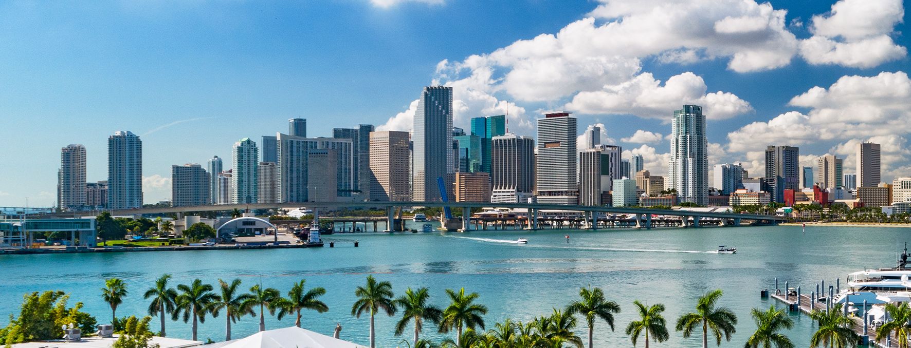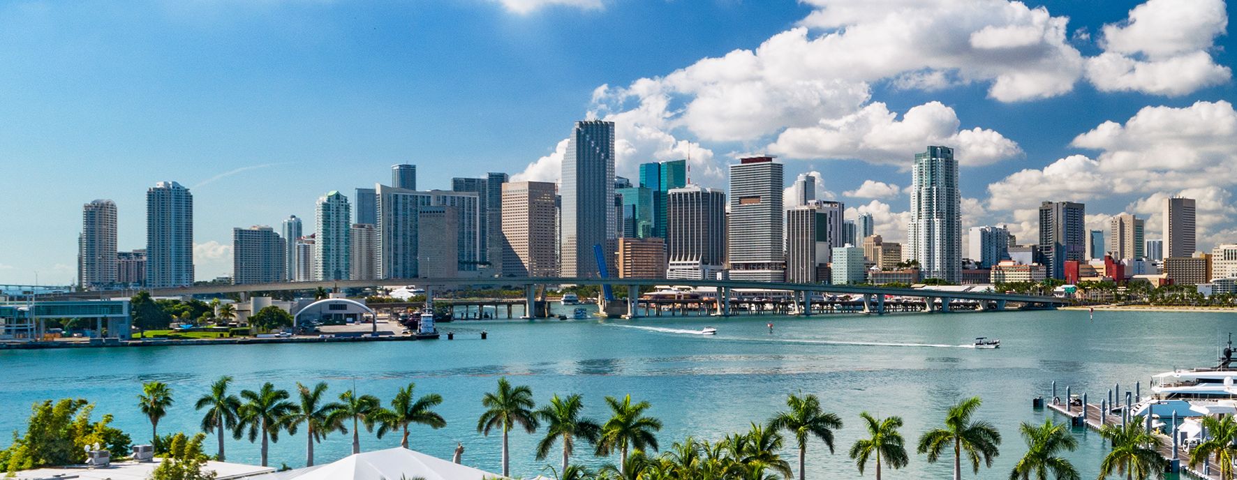 Miami liegt an der Südostküste Floridas und ist für seine Mischung aus tropischem Flair, internationalem Charme und lebendigem Nachtleben bekannt. Miami erstreckt sich von Miami Downtown bis zu den berühmten Stränden von Miami Beach. Direktflüge von Zürich aus bringen Sie in etwa 10 Stunden nach Miami. Von Basel oder Genf bringen sie mittels Multistop-Flügen nach Miami.