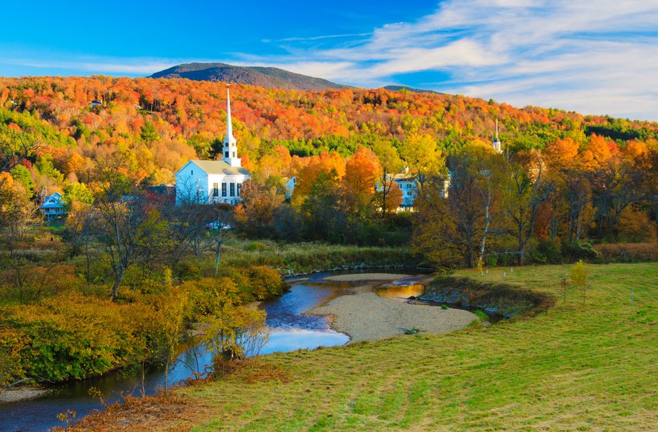 In dieser ländlichen Gegend prägen weisse Bauernhäuser, fruchtbare Täler und sanfte Hügel das Bild. Dazu gehören auch die Green Mountains mit 223 Er hebungen von über 600 m.